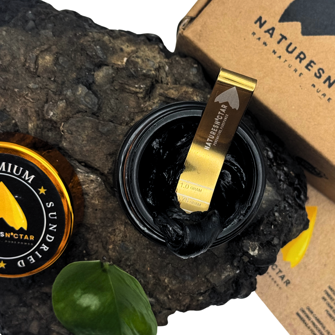 Natures N’ctar Shilajit er håndplukket fra de højeste bjerge. Vi står selv for filtrering og soltørring for at sikre maksimal renhed, styrke og kvalitet.